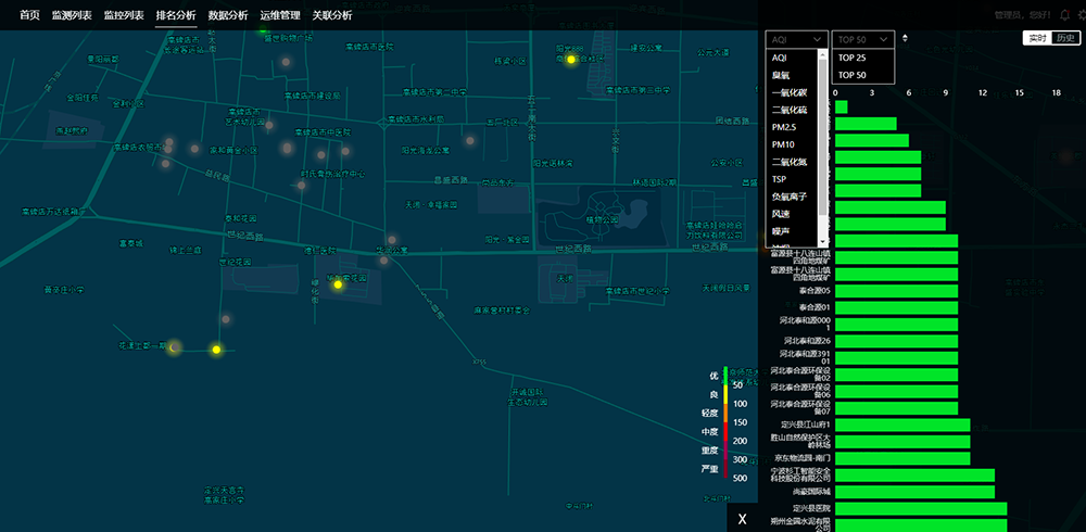 可以對各個監(jiān)測點位進行AQI或者PM10參數(shù)進行實時簡單排名或歷史排名,以此快速了解各個監(jiān)測點位的排名