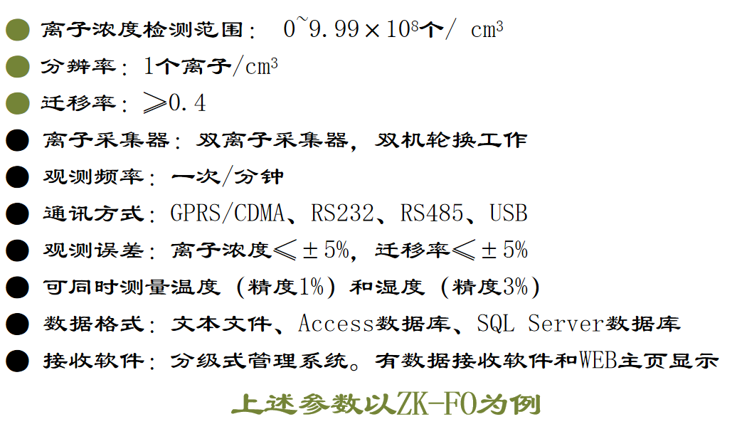 中科正奇ZK - F O 負(fù)氧離子監(jiān)測系統(tǒng)按照國家林業(yè)局發(fā)布的” 空氣負(fù)( 氧) 離子濃度監(jiān)測站點建設(shè)技術(shù)規(guī)范“ LY / T 2 5 8 7 — 2 0 1 6 標(biāo)準(zhǔn)自主研發(fā),自主生產(chǎn)。 該產(chǎn)品設(shè)計使用最先進的雙重同心圓筒原理設(shè)計, 同時采用最 新“ J I S B ” 氣體離子密度標(biāo)準(zhǔn), 滿足現(xiàn)行國際標(biāo)準(zhǔn)。