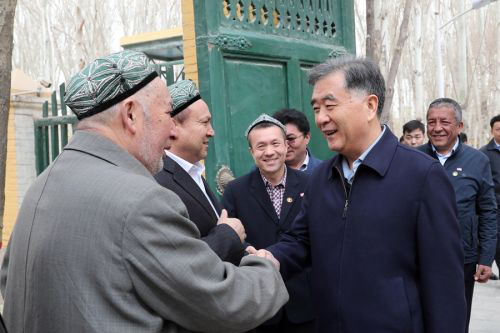 汪洋強(qiáng)調(diào),人心是最大的政治。實(shí)現(xiàn)新疆工作總目標(biāo)根本在于凝聚人心。要完善維穩(wěn)措施,保持對“三股勢力”的高壓態(tài)勢,為經(jīng)濟(jì)社會發(fā)展和各族群眾生產(chǎn)生活創(chuàng)造良好環(huán)境。要正確執(zhí)行黨的民族政策,堅(jiān)決反對和打擊民族分裂勢力,同時(shí)依法保障各民族享有相同的權(quán)利、義務(wù),注重保護(hù)少數(shù)民族優(yōu)秀傳統(tǒng)文化,不斷鞏固發(fā)展民族團(tuán)結(jié)。要堅(jiān)持黨的宗教工作基本方針,堅(jiān)決反對和打擊宗教極端思想,同時(shí)依法保障信教群眾正常宗教需求,尊重信教群眾的習(xí)俗。要正確處理不同性質(zhì)的矛盾和問題,堅(jiān)持用“團(tuán)結(jié)-批評-團(tuán)結(jié)”的方式處理好人民內(nèi)部矛盾。
