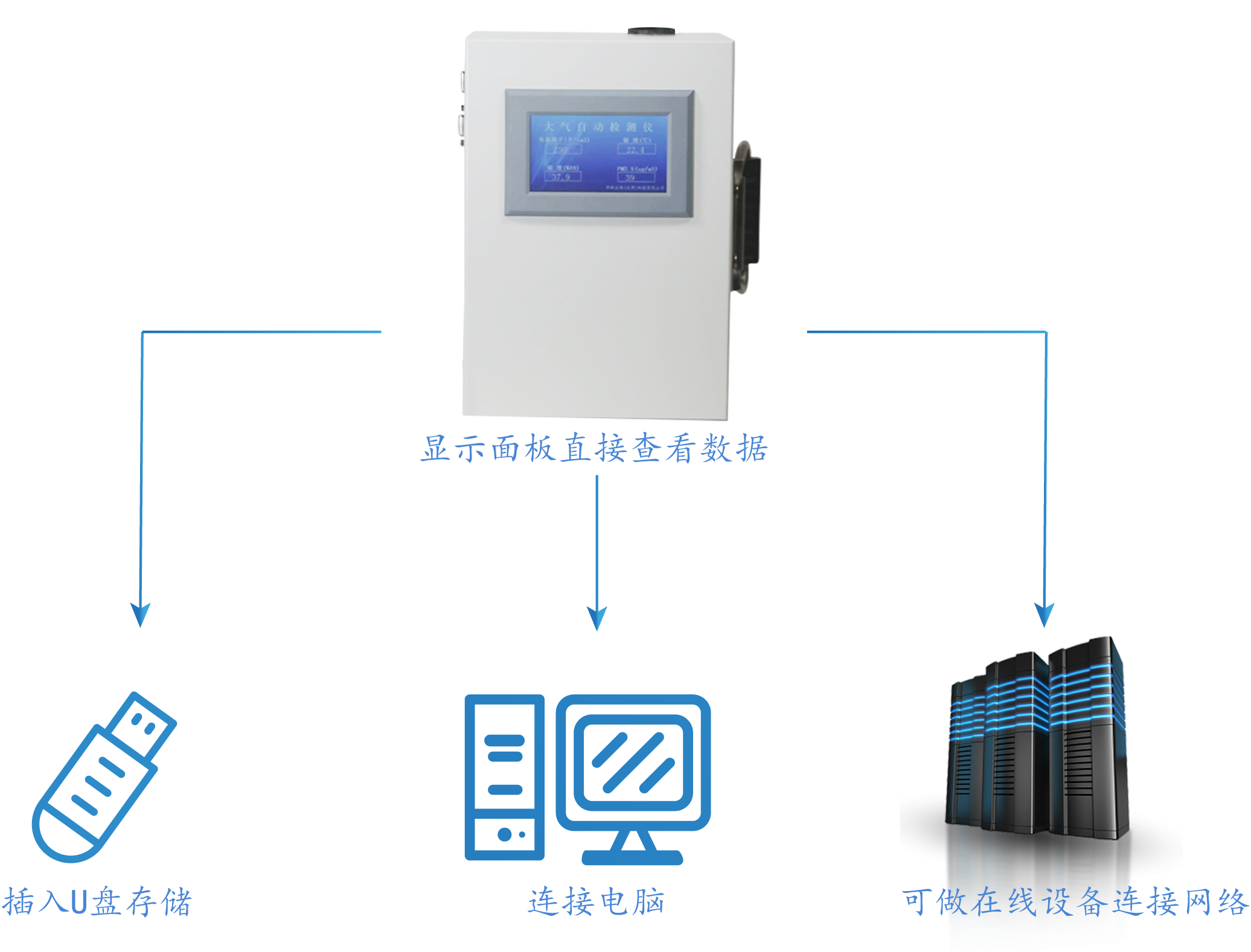 本設(shè)備根據(jù)便攜式和在線一體化的思想設(shè)計(jì)。采用高精度傳感器和金屬箱體,能實(shí)時(shí)測(cè)量負(fù)氧離子、PM2.5、溫度、濕度。本設(shè)備可支持長(zhǎng)期在線使用也可臨時(shí)測(cè)量。即可當(dāng)在線設(shè)備使用,也可以當(dāng)做便攜式使用。