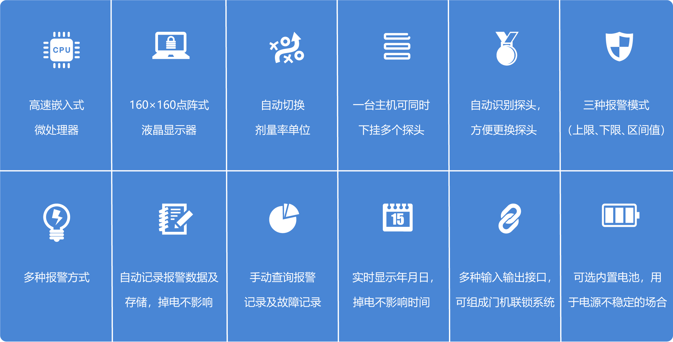 ZK-RL5000區(qū)域輻射安全報警儀能夠?qū)崟r監(jiān)測х、γ輻射劑量率,并在發(fā)生超閾值時給出報警信號。它選用了高速的嵌入式微處理器與160x160點陣式顯示器,即滿足儀器能夠?qū)崟r的監(jiān)測、快速的響應;又保證了操作上的簡便與人性化。主機和探頭之間采用了可靠的通訊方式,保證了主機能實時顯示每個探頭的具體劑量率,并能實時指示出探頭的當前狀態(tài)(正常/故障/掉線)。另可根據(jù)現(xiàn)場要求,選配輻射區(qū)域監(jiān)測軟件,該軟件可連續(xù)存儲30個探頭5 年以上的歷史數(shù)據(jù)。